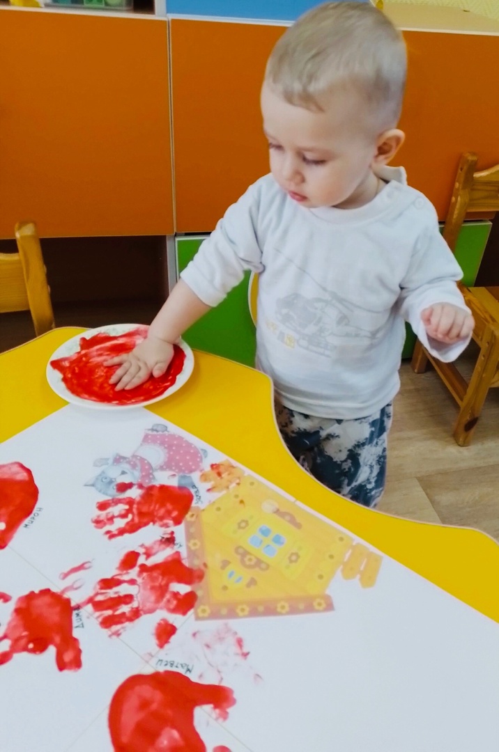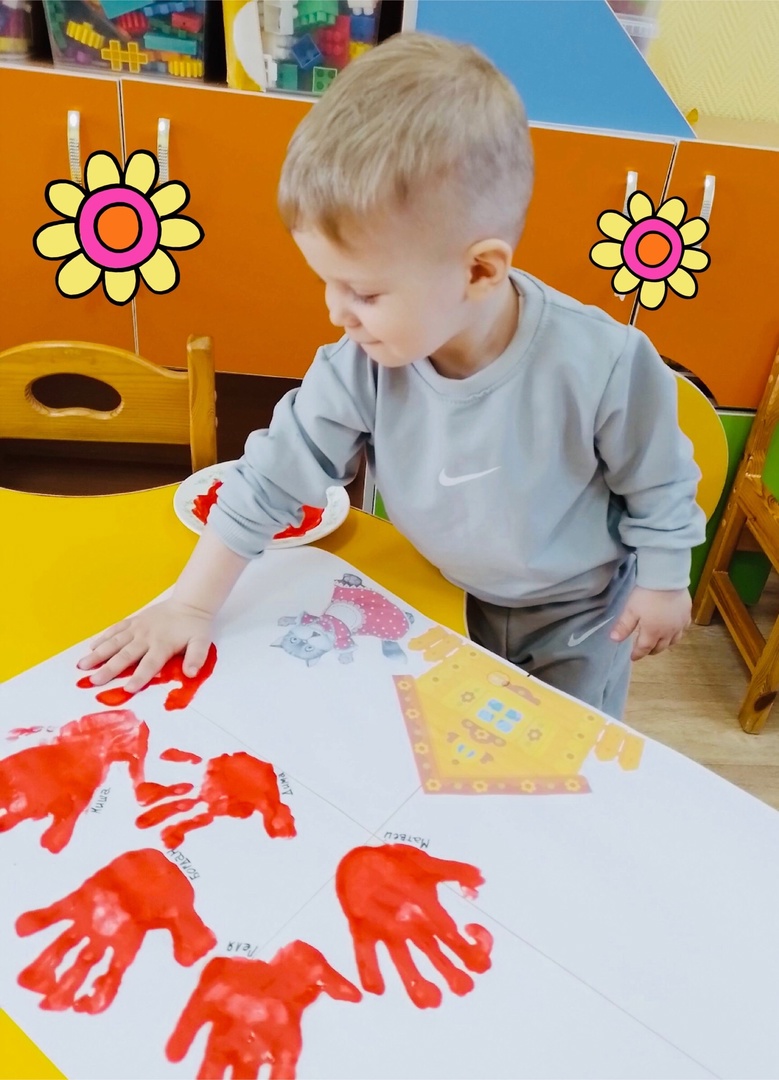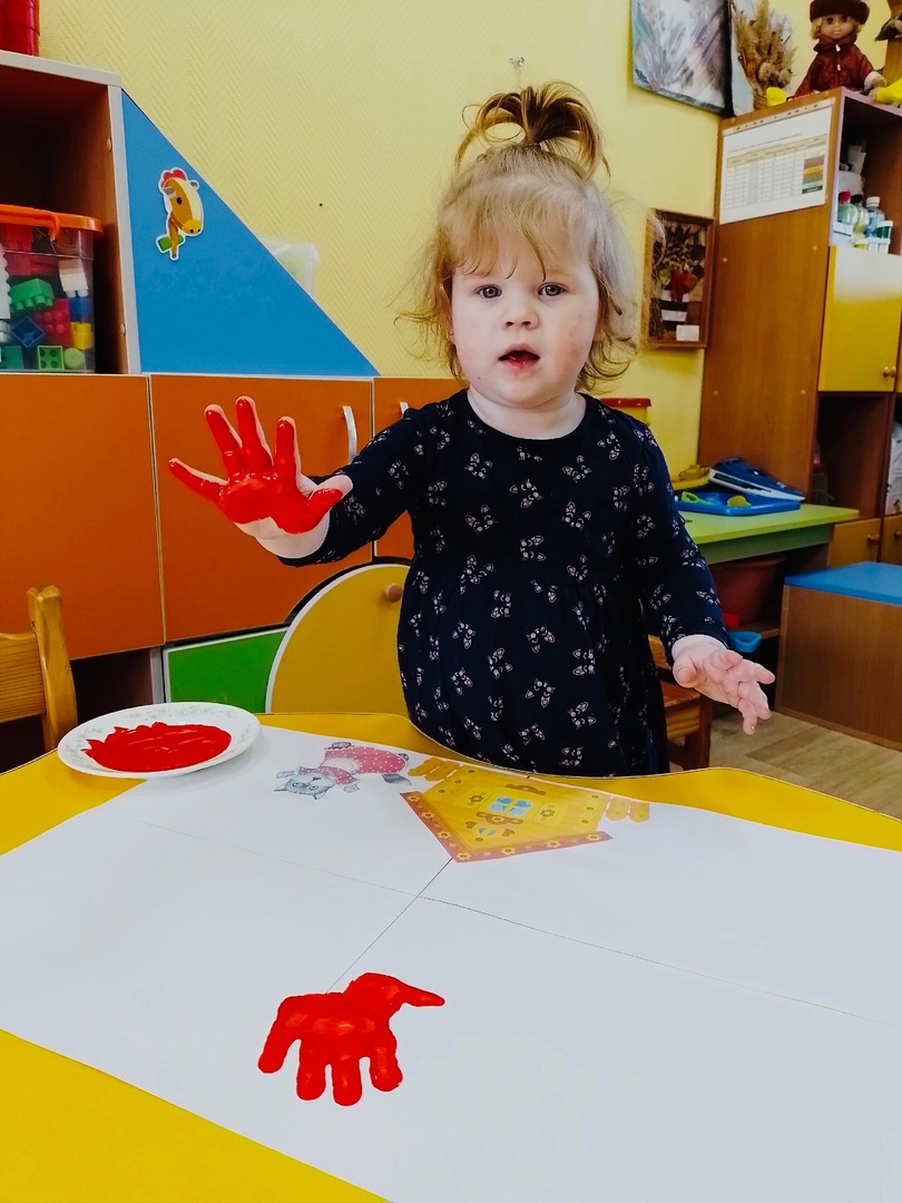 Рисование ладошками «Загорелся кошкин дом».
