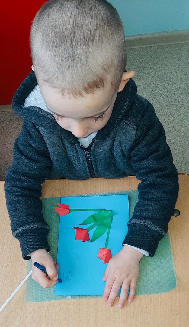 Открытка с элементами оригами (средняя группа «Рябинка», воспитатель - Круглова Таисия Александровна)