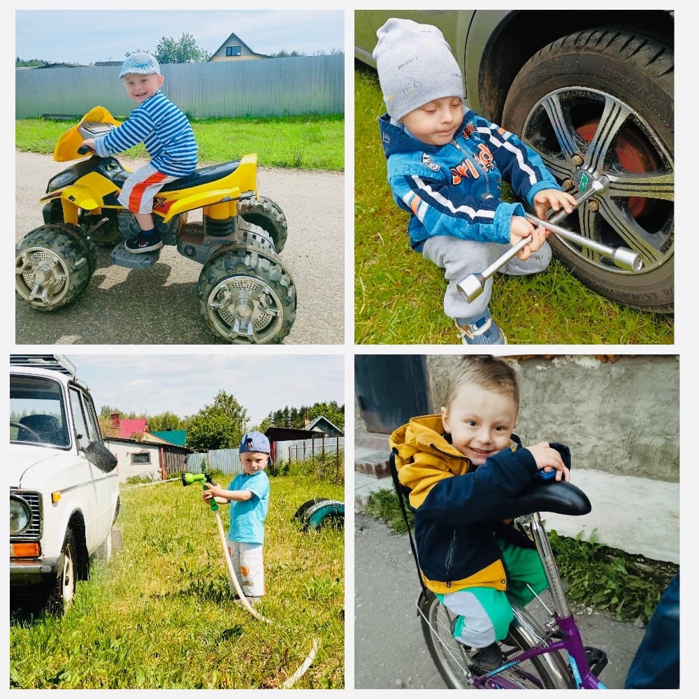 Летом у бабушек я катаюсь на квадроцикле, на машинках, купаюсь в бассейне, а зимой мы ходим кататься на ватрушках и санках. Бабушкам я помогаю поливать огород и собирать ягоды. А еще я очень люблю животных, особенно кошек, которых у бабушки аж целых две!