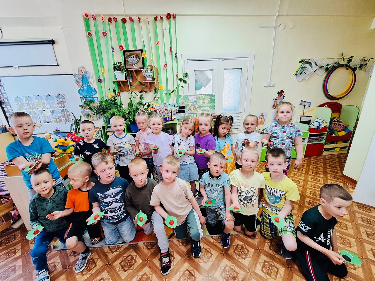 Все дети увлечённо работали в мастерской. Каждый сделал свою "Божью коровку", а потом красавицы покрасовались на выставке в раздевалке группы.