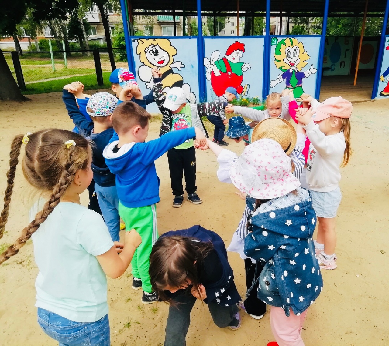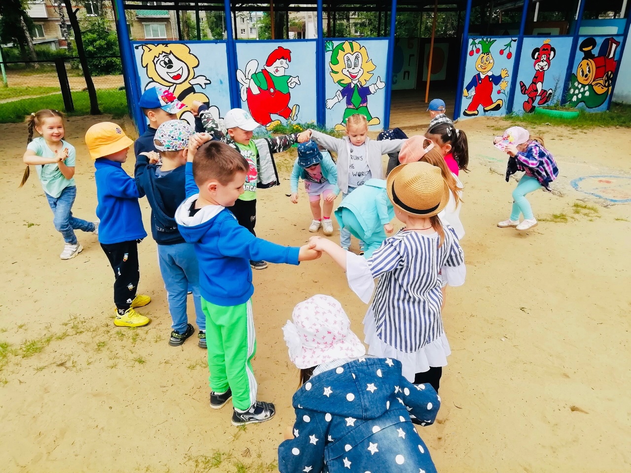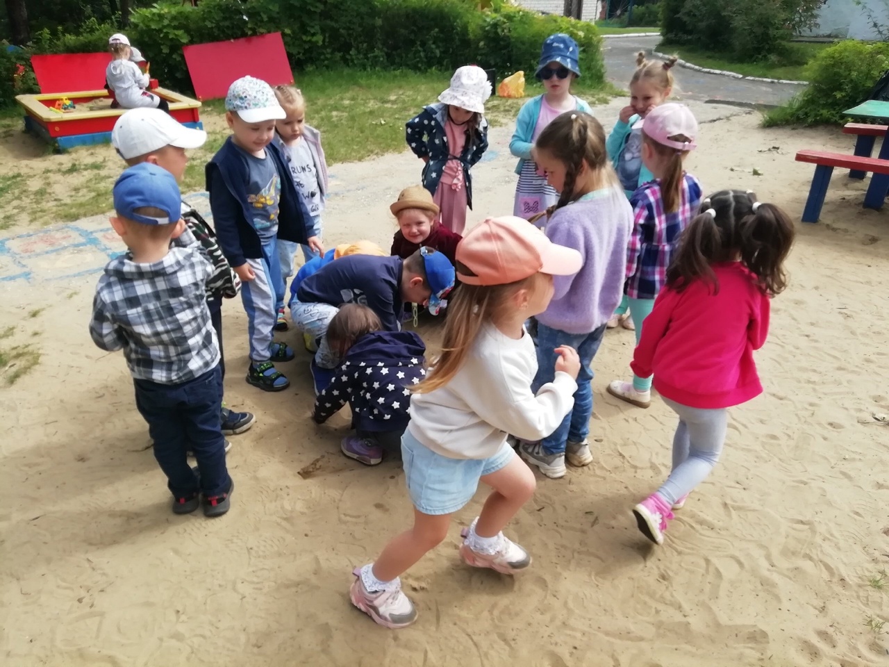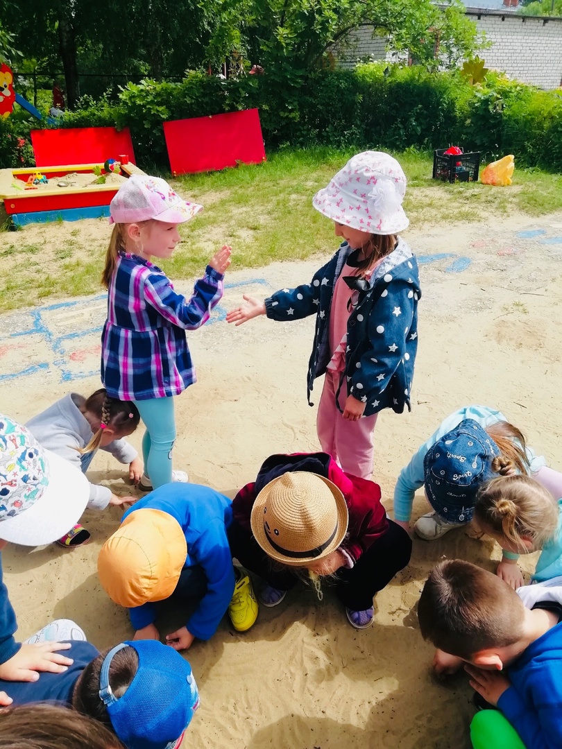 Во время прогулки дети играли в игру средней подвижности «Горшочек и хозяин» и в