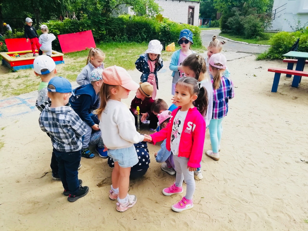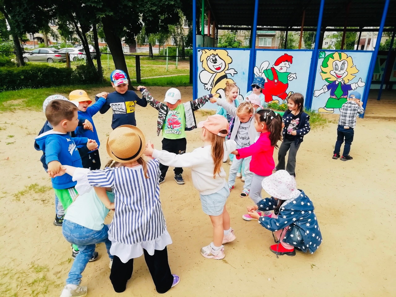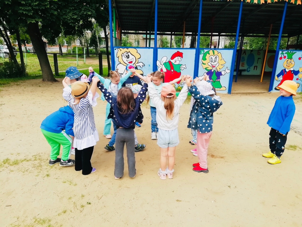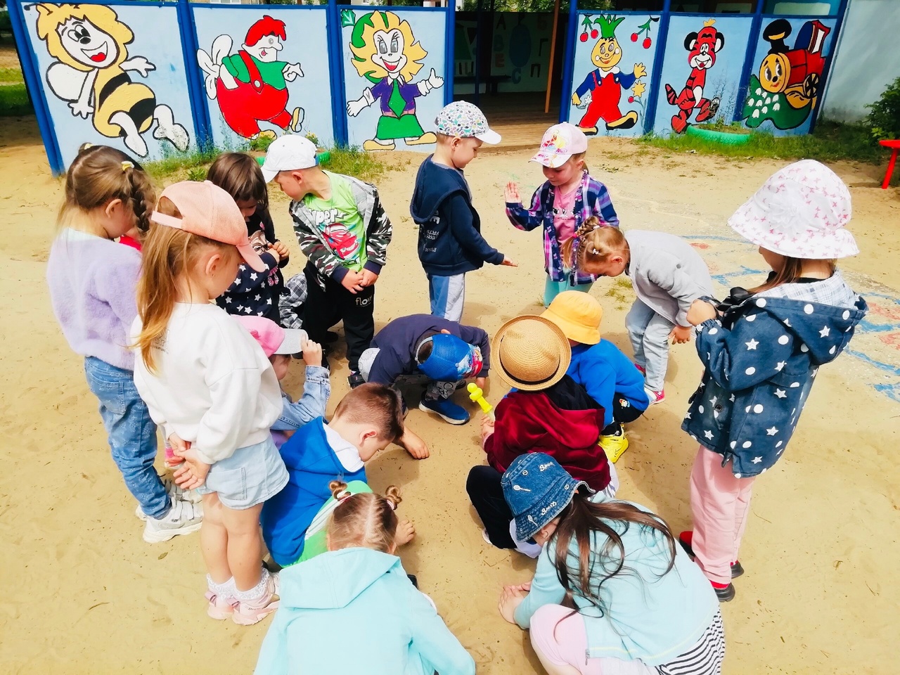 Во время прогулки дети играли в игру средней подвижности «Горшочек и хозяин» и в