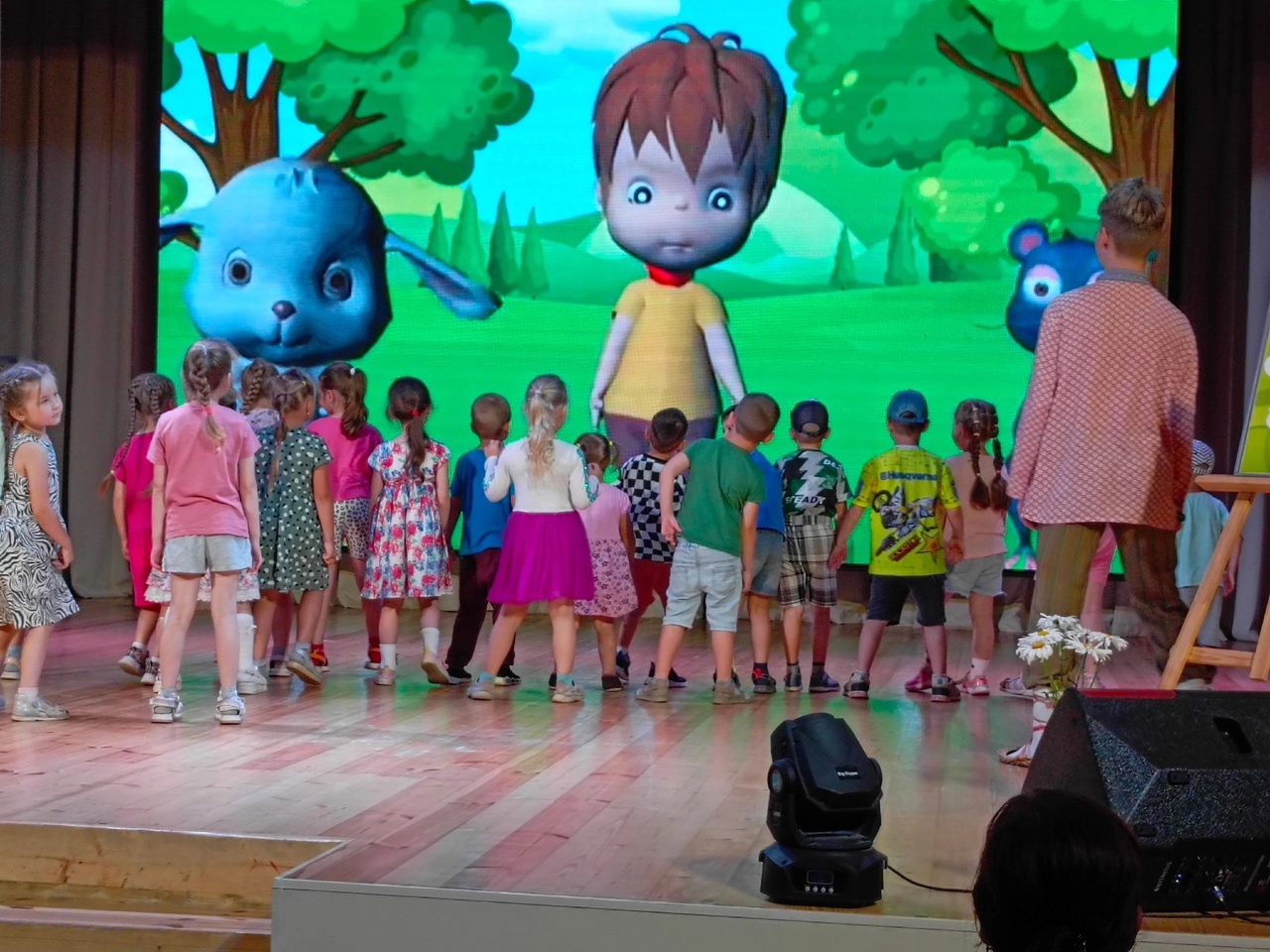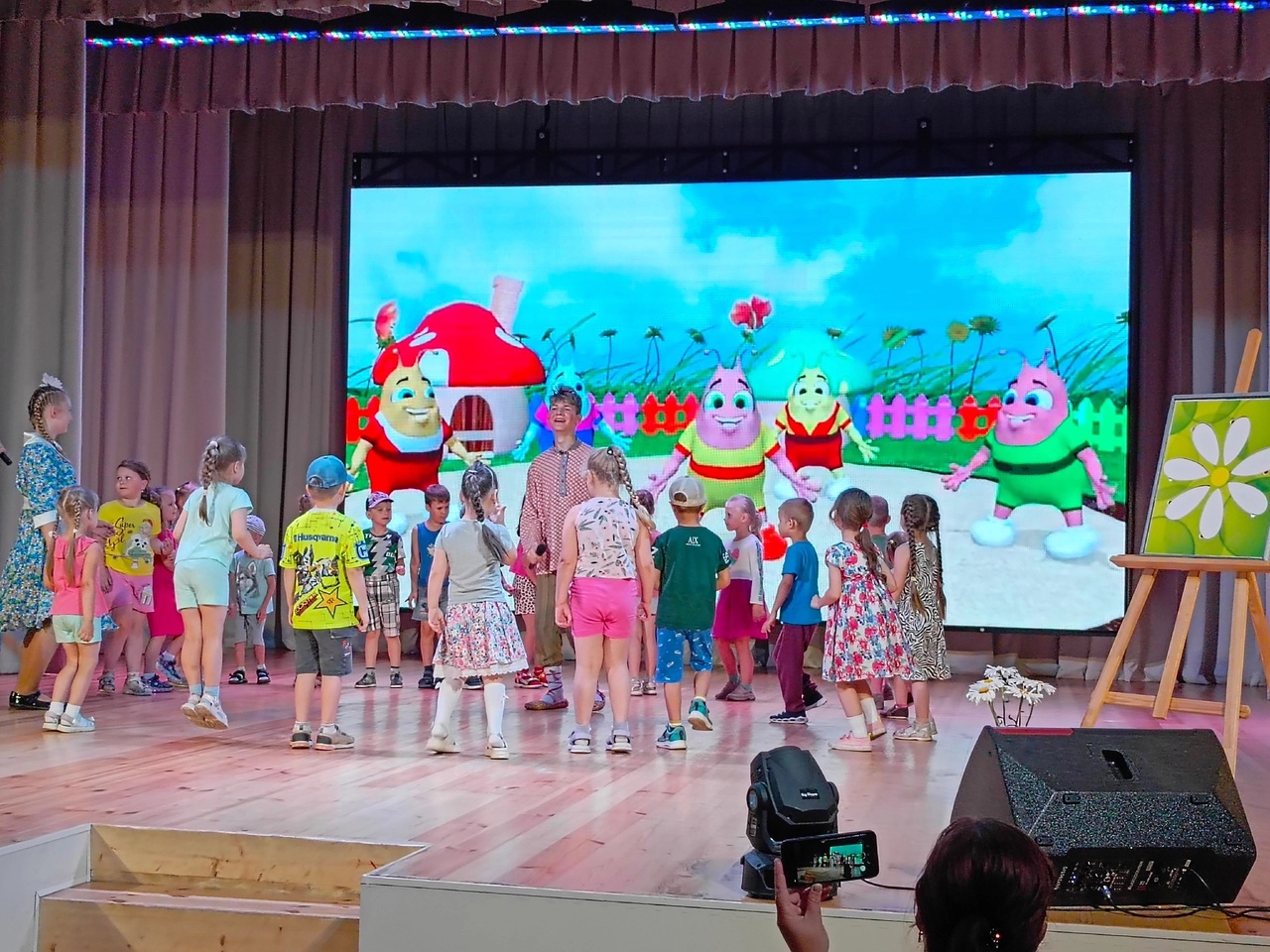 Весёлый персонаж Ромашка поиграла с ребятами и организовала веселую зарядку.