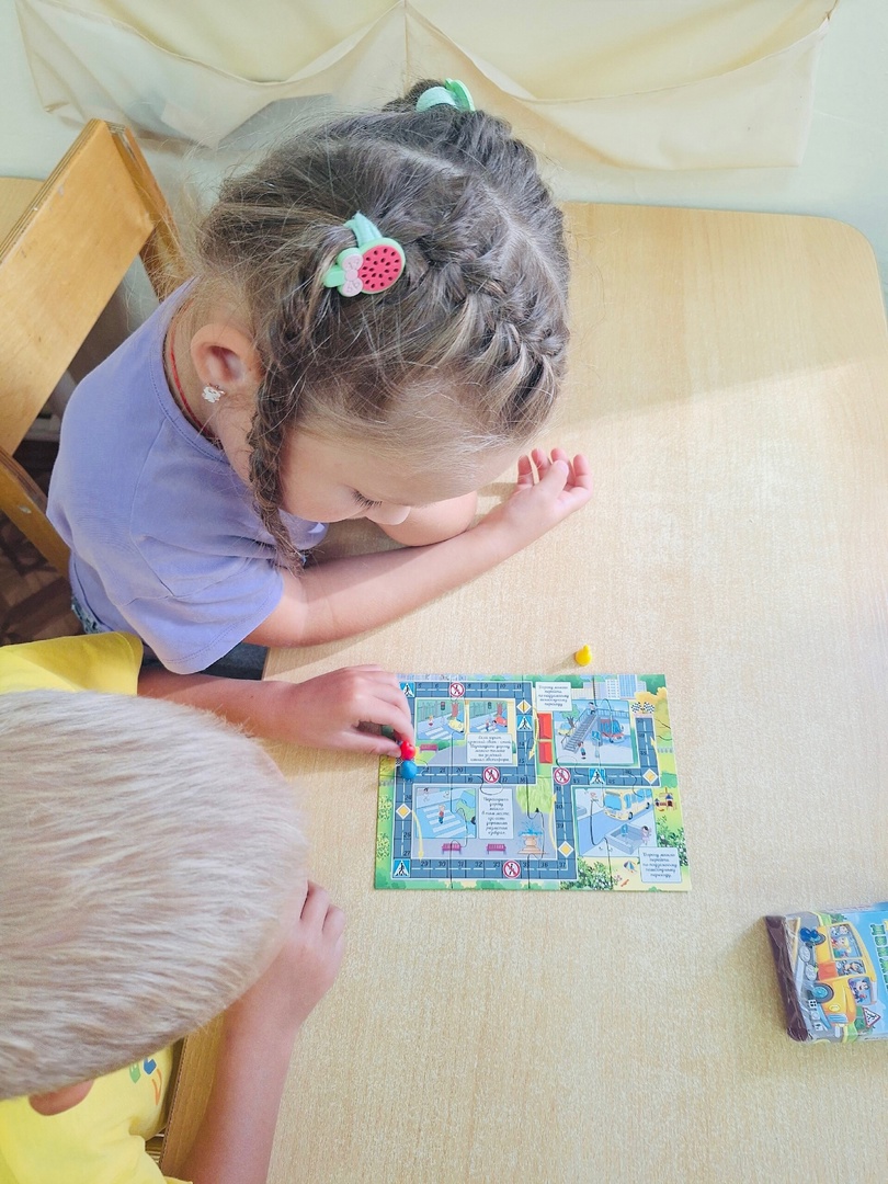 Дети подготовительной группы «Колокольчик» (воспитатель -Корнева Валентина Николаевна) играли в настольные игры по ПДД. В ходе игр закрепляли правила поведения на дороге.