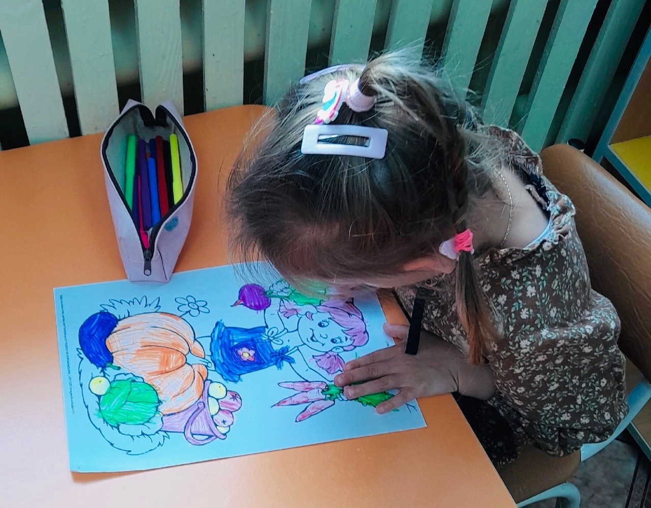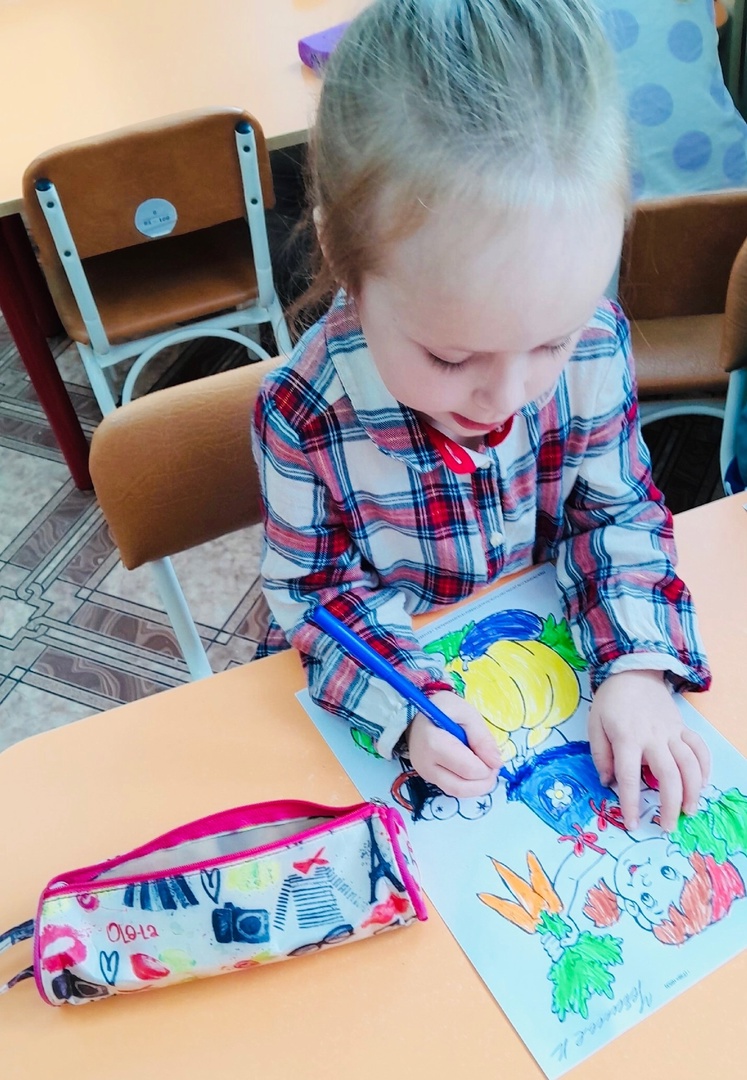 Закрепляем знания об овощах и фруктах, ребята с удовольствием раскрасили осенний урожай.