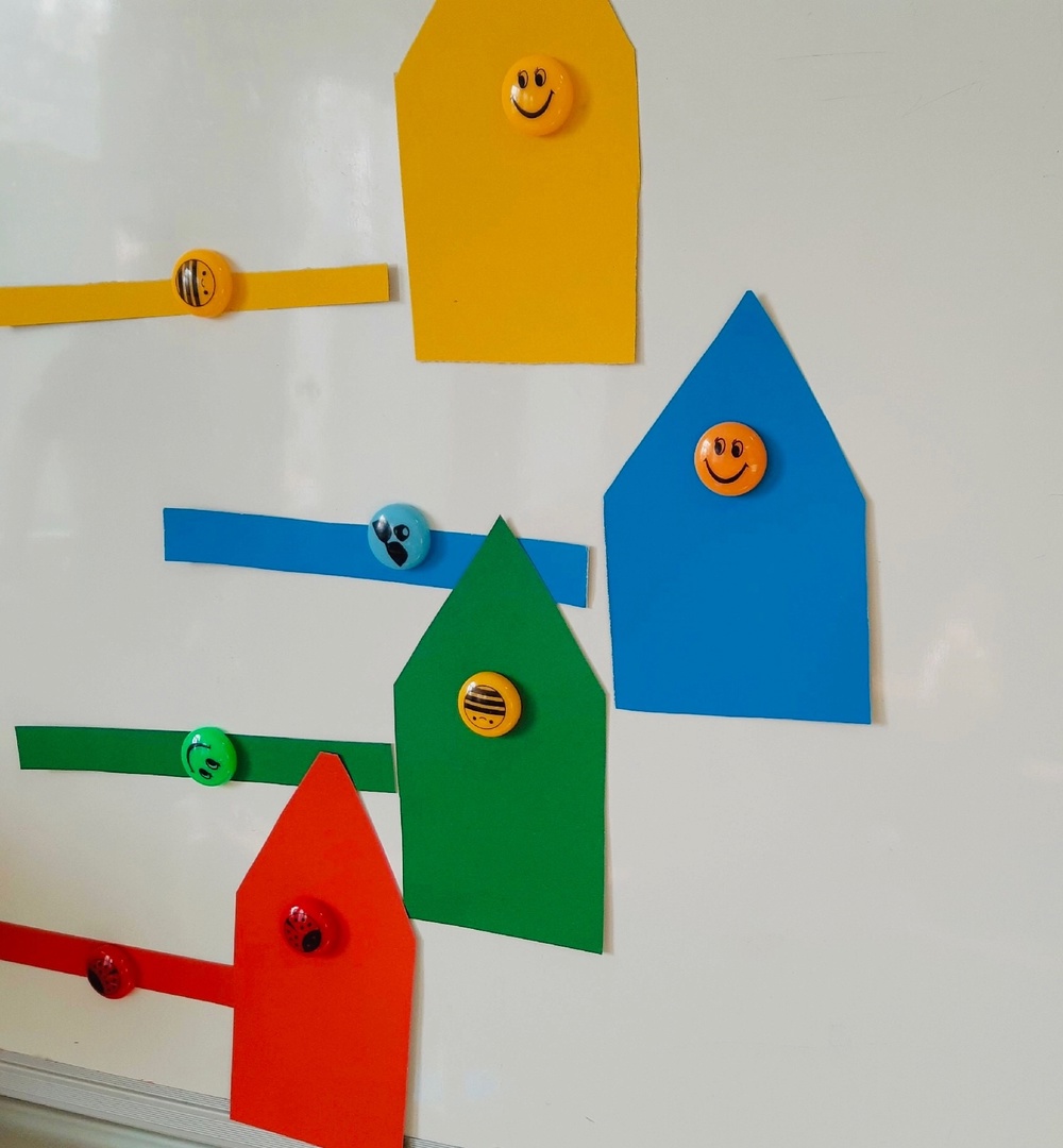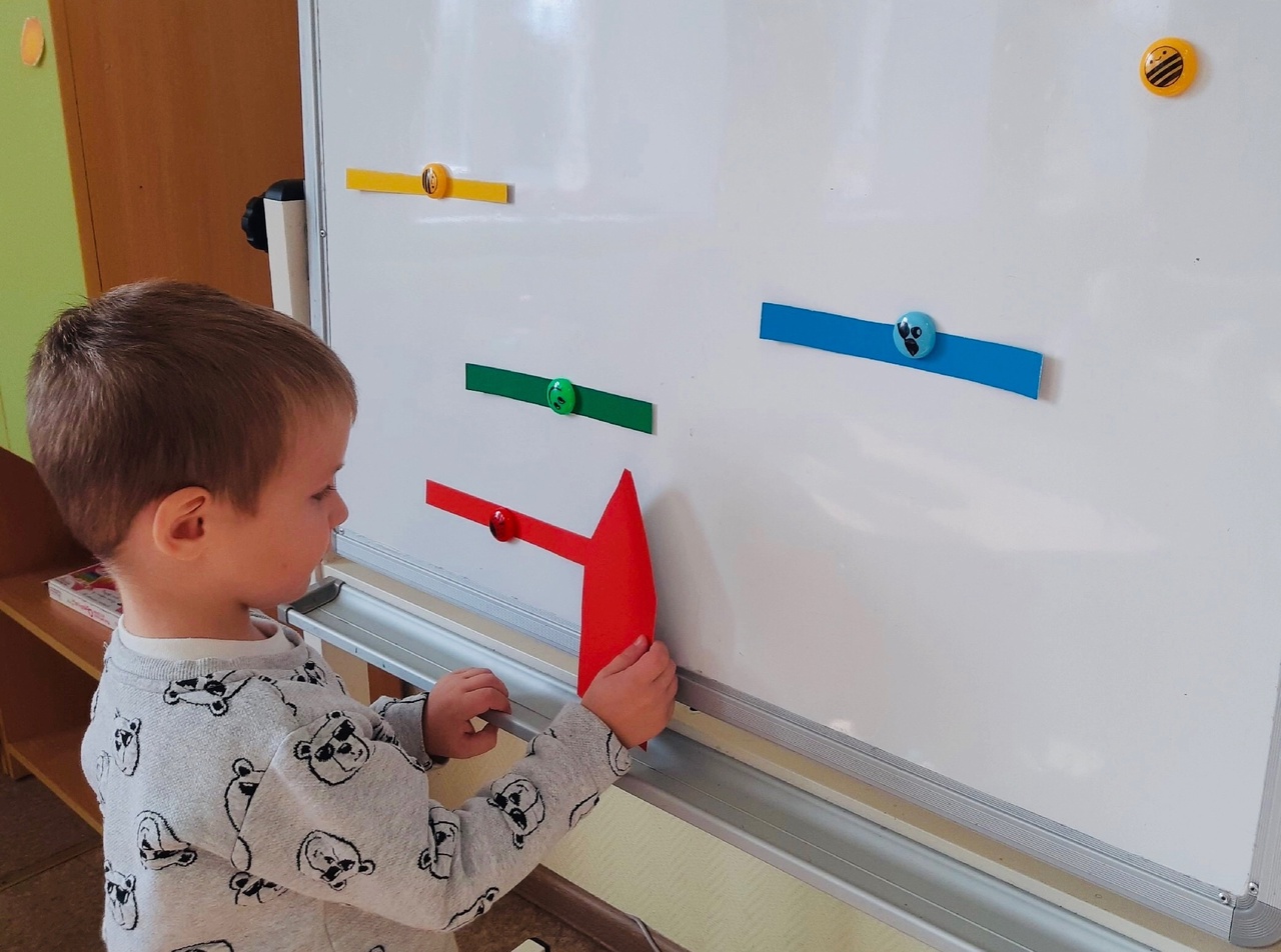 На занятии по математике ребята группы «Пчёлушки» ходили в гости к цветным человечкам ( воспитатель -Бадина Елена Александровна)