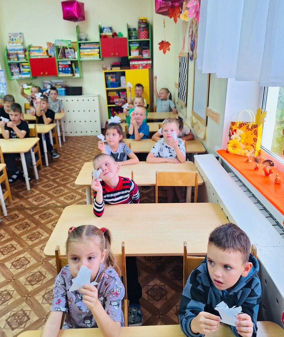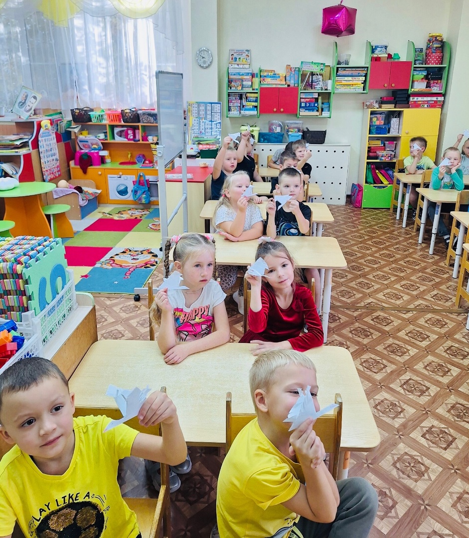 Сотрудник детской библиотеки -Татьяна Алексеевна познакомила детей подготовительной группы Колокольчик» (воспитатель -Корнева Валентина Николаевна) с Днём белых журавлей и под её руководством сделали бумажных журавлей.
