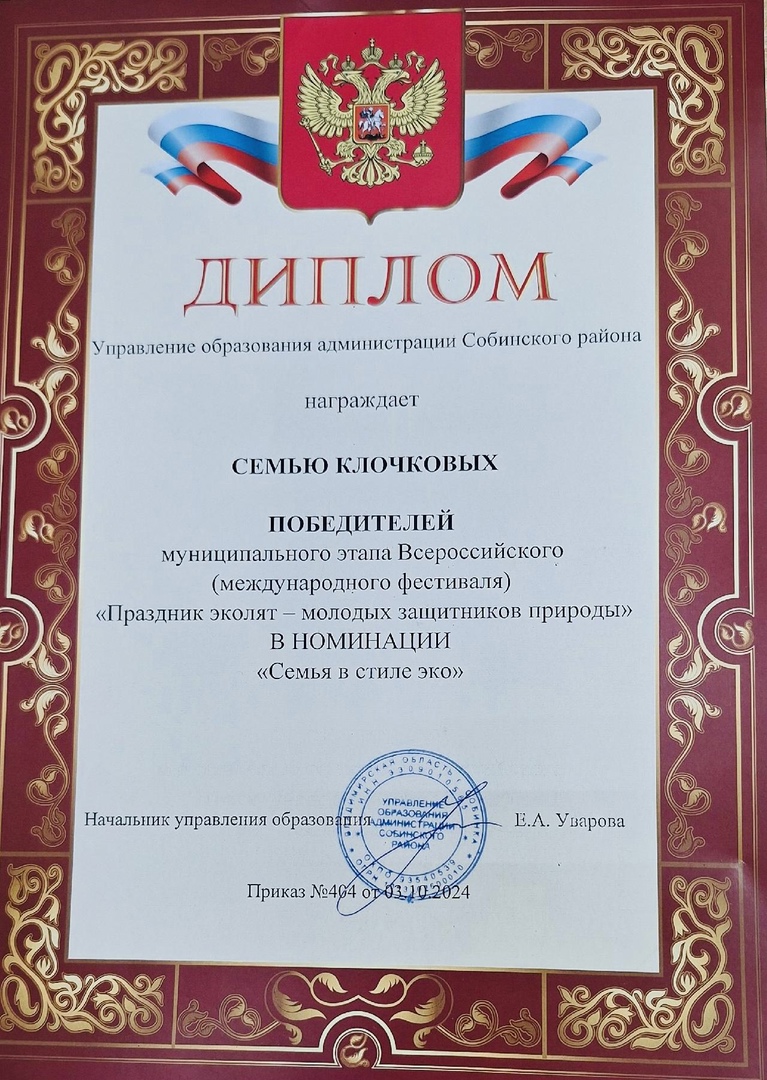 Семья Клочковых -ПОБЕДИТЕЛЬ муниципального этапа Всероссийского (международного фестиваля) "Праздник эколят - молодых защитников природы" в номинации "Семья в стиле эко"