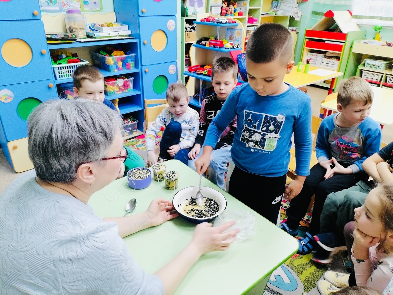 С помощью съедобных кормушек можно подкармливать зимующих птиц, которые питаются зерном.