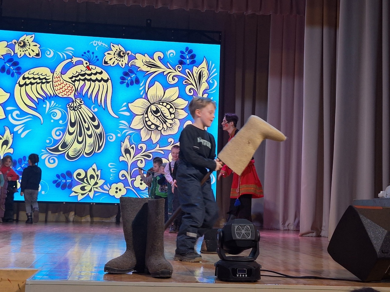 Дети отгадывали загадки, прыгали в валенках, играли валенком в городки, превратили валенки в чистокровных скакунов и устроили скачки, слушали частушки и песни про валенки, смотрели веселые танцы.