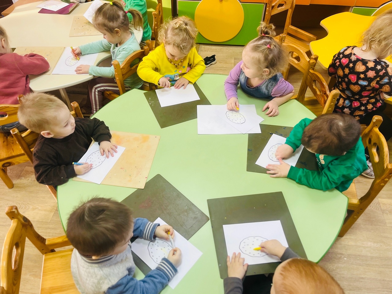 Дошколята рисовали самый главный символ Масленицы -блинчики.