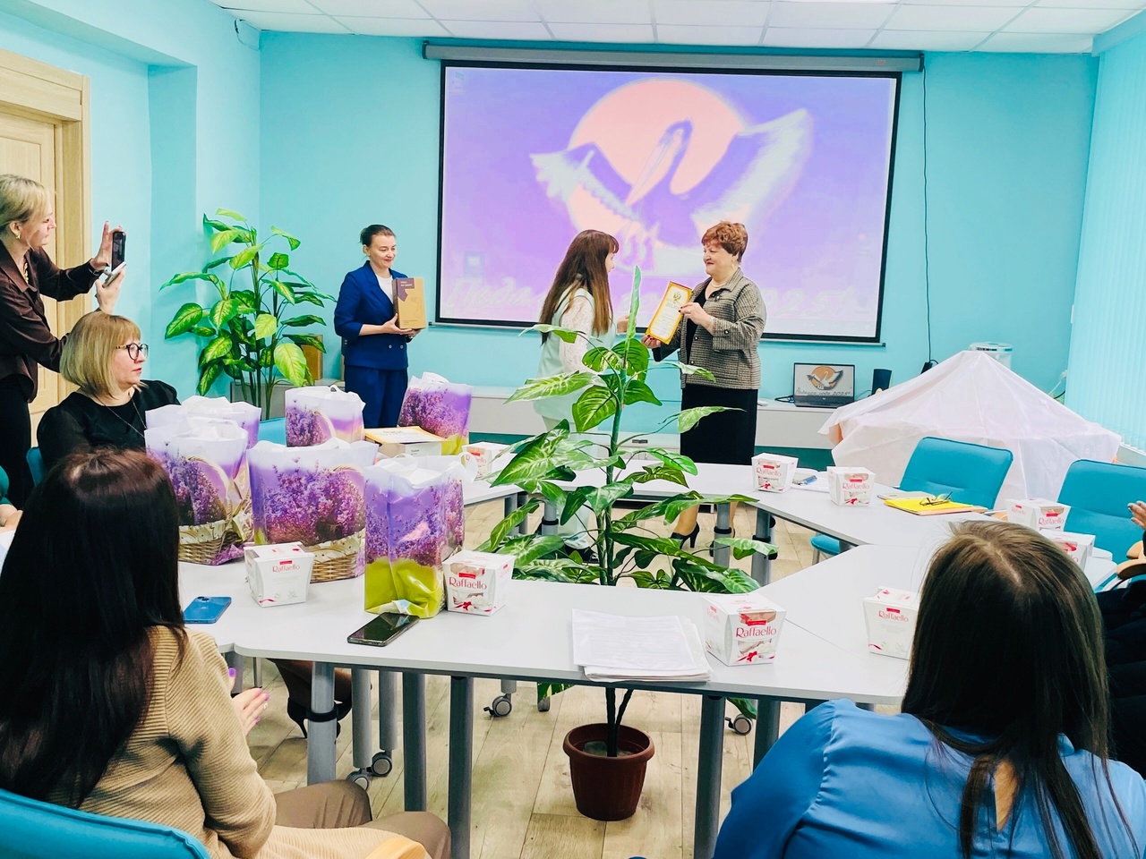 С поздравлениями выступила Михайлова И.А, председатель районной профсоюзной организации, которая вручила всем участникам ценные подарки.