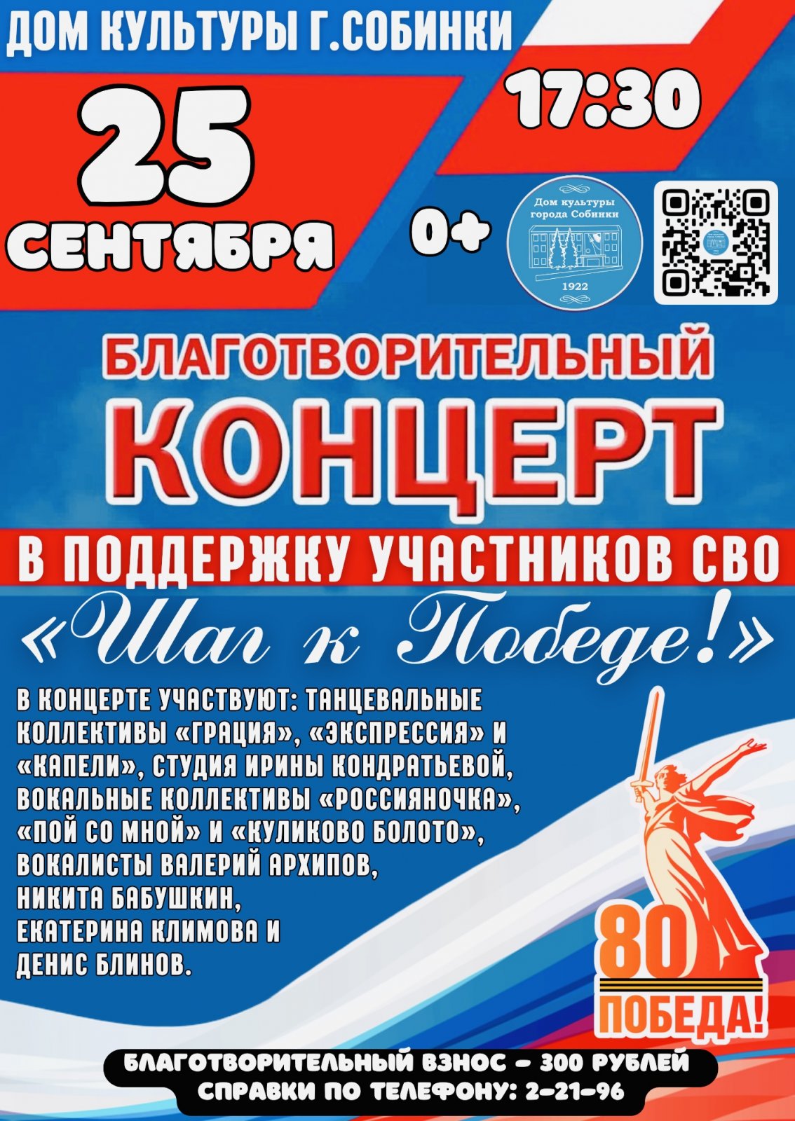 Дом культуры приглашает всех желающих на благотворительный концерт в поддержку участников СВО, который состоится 25 сентября в 17.30ч.