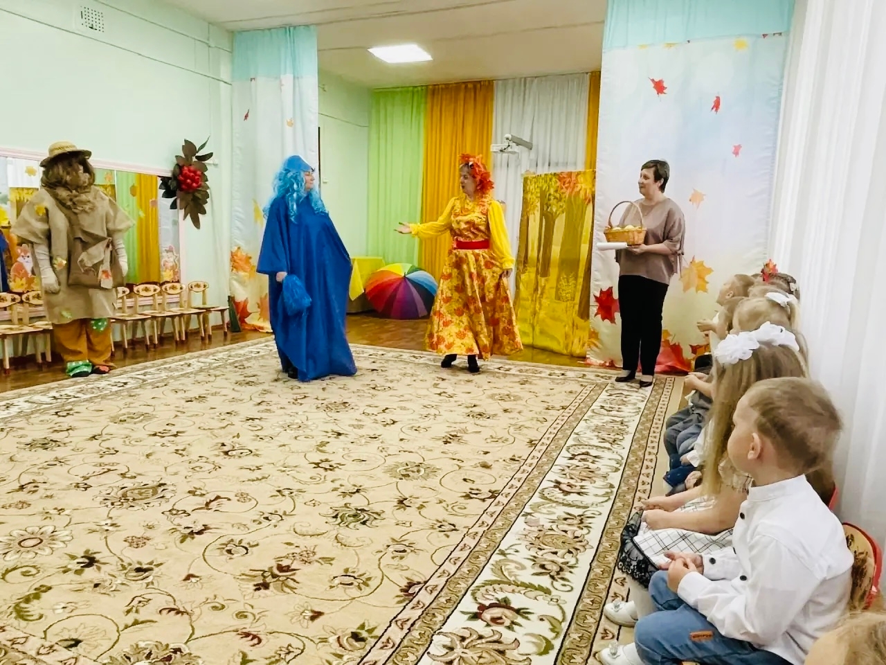 На празднике ребята встретились с прекрасной Осенью, Тучкой и Лесовичком.