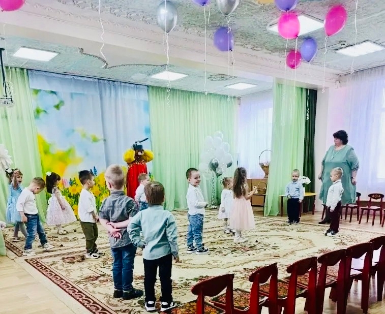 Весенний праздник в группах «Ромашка», «Колокольчик» и «Пчёлка».