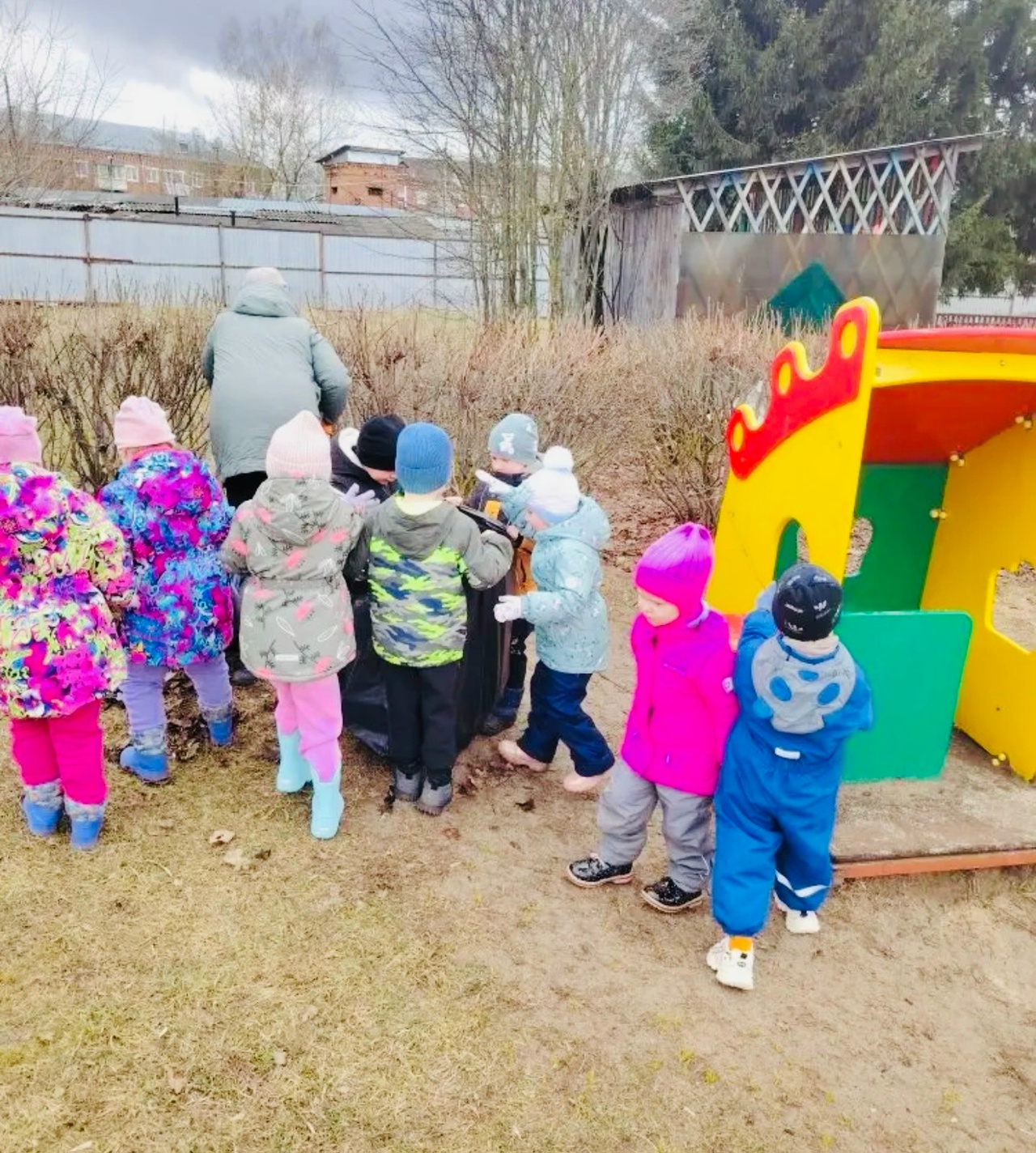 Убираем территорию детского сада вместе с детьми